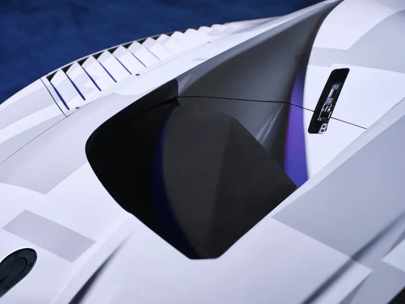 Rispetto alla versione precedente, la EVO non è più verniciata ma rivestita con una pellicola significativamente più leggera. Per migliorare l’aerodinamica sono stati modificati gli specchietti, ora più piccoli e fanno il paio con nuovi sfoghi dell’aria su cofano. Cambiano anche le feritoie sui passaruota per sfogare al meglio la sovrapressione locale. Inoltre, sul posteriore fa bella mostra di sé una nuova ala posteriore, regolabile in ancora più posizioni. Un insieme di interventi che hanno permesso alla EVO di migliorare la sua efficienza aerodinamica.